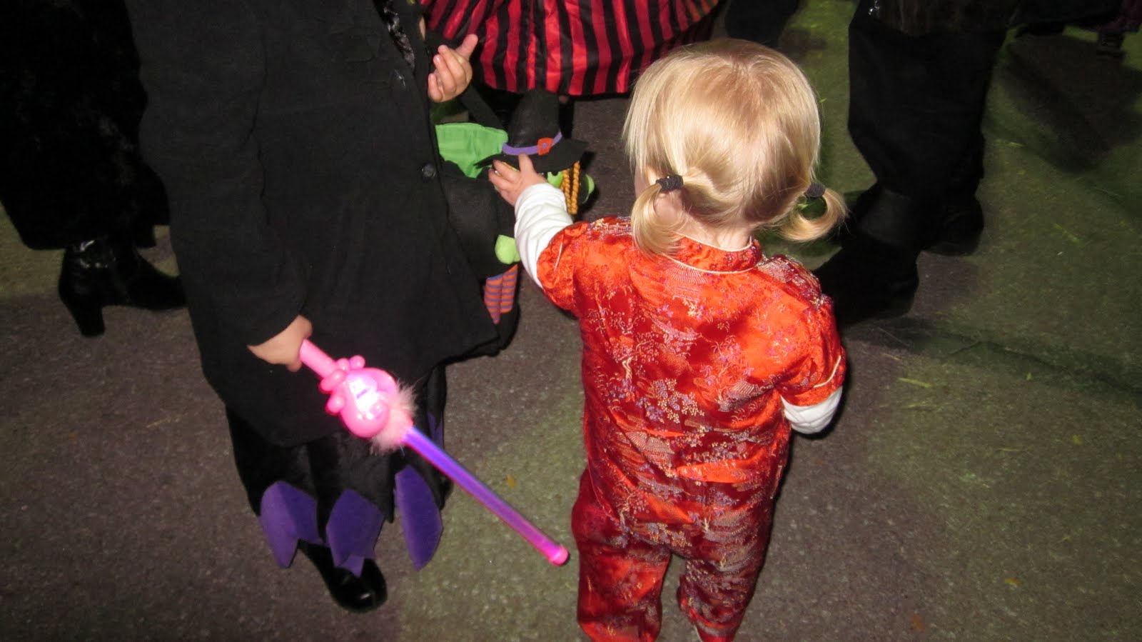 Madelin was given a pumpkin, handed it back, and went for the candy. Smart girl.
